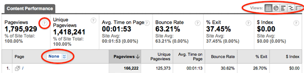 Whereas, Traffic Sources shows you information about other people's pages as they relate to yours, the Content section only shows you information about what happens on your pages.