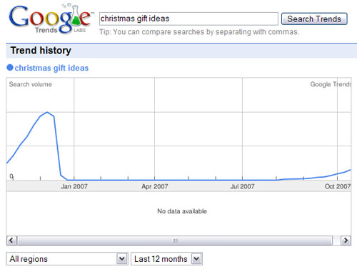 The same goes for Christmas-related searches. Here I looked at "christmas gift ideas":