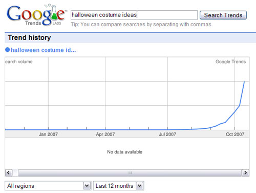 Here's Google Trends data from the past twelve months for the search term "halloween costume ideas."