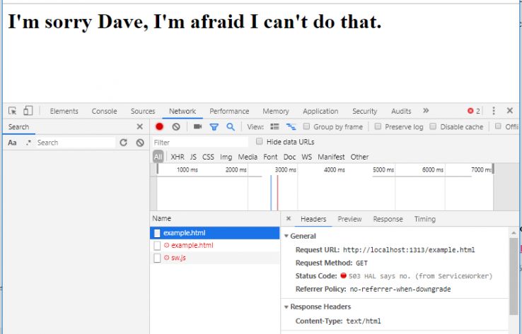 I’ve made a conscious effort to keep code snippets to a bare minimum in this article, but grant me this one. I’ve put together an example which illustrates how a simple service worker might use the Fetch API to handle requests and the degree of control which we’re afforded: