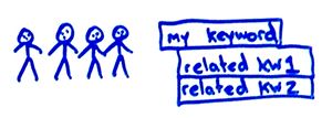 Related keywords meaning those that are semantically connected that Google is going to view as critical to proving to them that your content is relevant to the searcher's query — in the page's text content. Why am I saying text content here? Because if you put it purely in visuals or in video or some other embeddable format that Google can't necessarily easily parse out, eeh, they might not count it. They might not treat it as that's actually content on the page, and you need to prove to Google that you have the relevant keywords on the page.