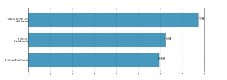 Over the past two years, we've seen Google crack down on over-optimized anchor text. Despite this, anchor text correlations for both partial and exact match were also quite large in our data set: