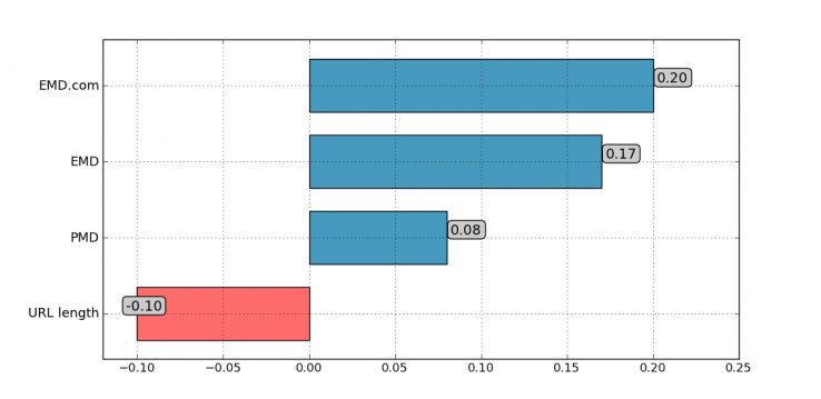 For each search result, we extracted all the factors we wanted to analyze and finally computed the mean Spearman correlation across the entire data set. Except for some of the details that I will discuss below, this is the same general process that both Searchmetrics and Netmark recently used in their excellent studies. Jerry Feng and Mike O'Leary on the Data Science team at Moz worked hard to extract many of these features (thank you!):