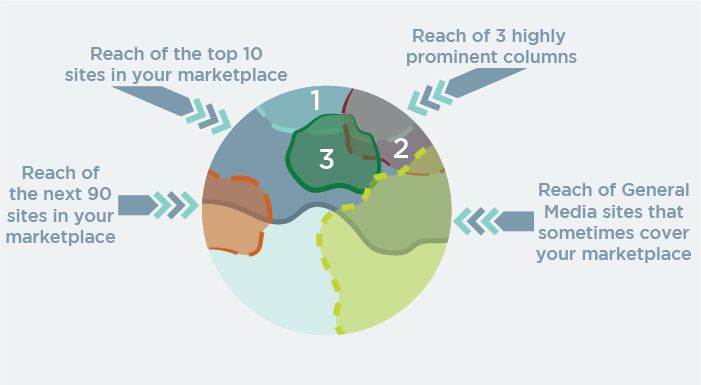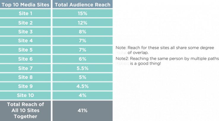 It's great to get high-value columns, but not every major media site will grant you that opportunity. Let's say you manage to get a column on three of the top sites. This may expose you to this type of reach: