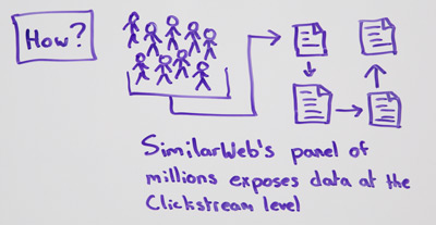One of them is SimilarWeb. SimilarWeb has a panel of users, essentially people who've installed software and toolbars and all sorts of other things that track their browser activity. They've opted in to this. This is not without their knowledge. They know. They've consented. This panel actually includes millions and millions of users. Thus we can get a real sample set of web users, especially in countries like the United States and in Europe where SimilarWeb's panel is relatively large and Israel as well. We can see that data at the clickstream level. Unfortunately, I can't see through this wig.