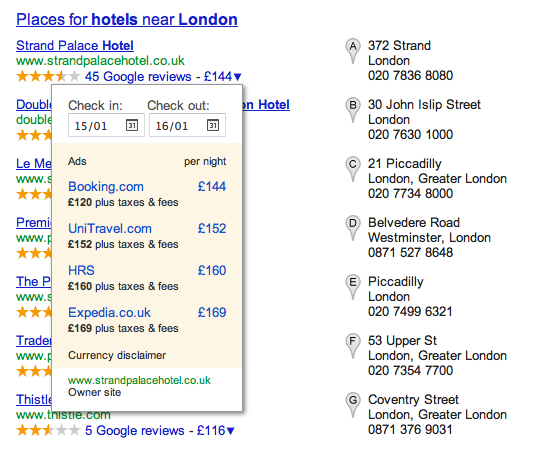 In another blow to small-time affiliates, Google sneakily crept in their own flight and hotel information, allowing users to compare prices, dates and quotes without having to leave SERPs.