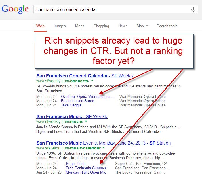 Structured data markup significantly affects both the way relevancy signals have traditionally been generated in the keyword-string SEO world, as well as how search results actually appear. The SERP landscape is a long way from ten blue links; video and image thumbnails, authorship thumbnails, and rich snippets of many types now fundamentally alter what users click on:
