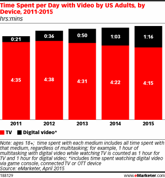 This post by Contently is old (July 2015), but it shared still-interesting stats via an Emarketer study about the growth of video consumption online.