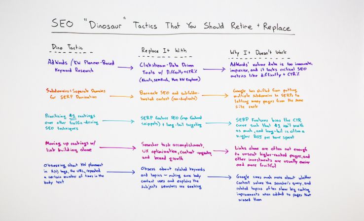 So take some of these dino tactics, try retiring them and replacing them with some of these modern ones, and see if your results don't come out better too. Look forward to your thoughts on other dino tactics in the comments. We'll see you again next week for another edition of Whiteboard Friday. Take care.