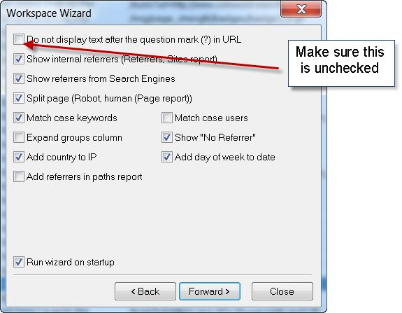 Now, let's take a look at how Googlebot is crawling moz.rainyclouds.online (NOTE: the data I am analyzing is from SEOmoz.org prior to our site migration to moz.rainyclouds.online. Several of the potential issues that I point out below are now solved. Wahoo!). The first step is getting the log data into a workable format. I explained in detail how to do this in my last server log post. However, this time make sure to include the parameters with the URLs so we can analyze funky crawl paths. Just make sure the box below is unchecked when importing your log file.