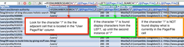 4. Scrub the Page/File column for the top-level directory so we can later run a pivot table and see which sections Google is crawling the most