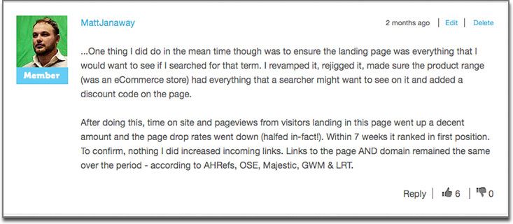 Consider this comment on a recent Whiteboard Friday. I've edited the comment below to highlight the important parts: