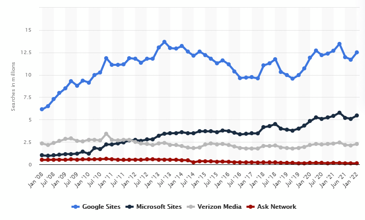 Number of explicit core search queries powered by search engines in the United States as of January 2022 - via Statista