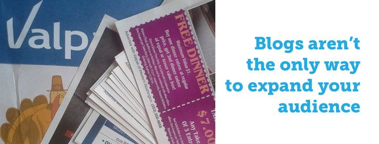 A blog is only one way to attract new customers. For example, I live less than a mile from the nearest grocery store, and I can get there and back with a spare stick of butter before my oven even warms up. If the next nearest store had the most amazing blog ever, I'm still not going to go there when I'm missing an ingredient. But if they send me a coupon in the mail, I might just try them out when it's less of an emergency.