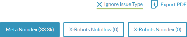 Second, you can now ignore entire issue types. Let's say, for example, that moz.rainyclouds.online intentionally has 33,000 Meta Noindex tags (for example). We really don't need to be reminded of that every week. So, once we make sure none of those are unintentional, we can go to the top of the issue page and click "Ignore Issue Type":