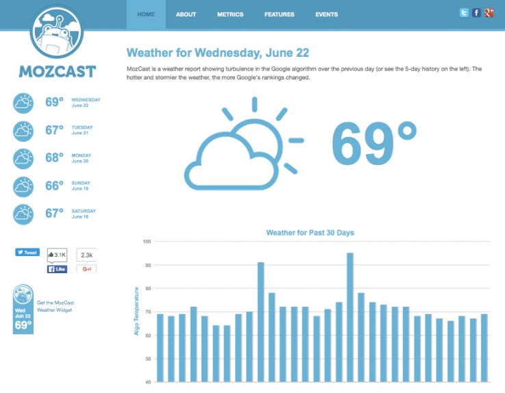 Mozcast plays a similar role by pointing people's attention to potential signs of shifts in Google's search algorithm. It is a useful tool, yes, for monitoring and predicting the search climate. It's also a story that teaches how much the algorithm changes and that SEO is not a one-and-done project.