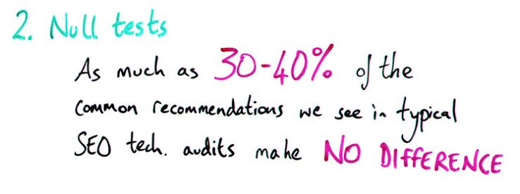 So this is that we see as many as 30% or 40% of the common recommendations in a classic tech audit make no difference. You do all of this work auditing the website. You follow SEO best practices. You find a thing that, in theory, makes the website better. You go and make the change. You test it.