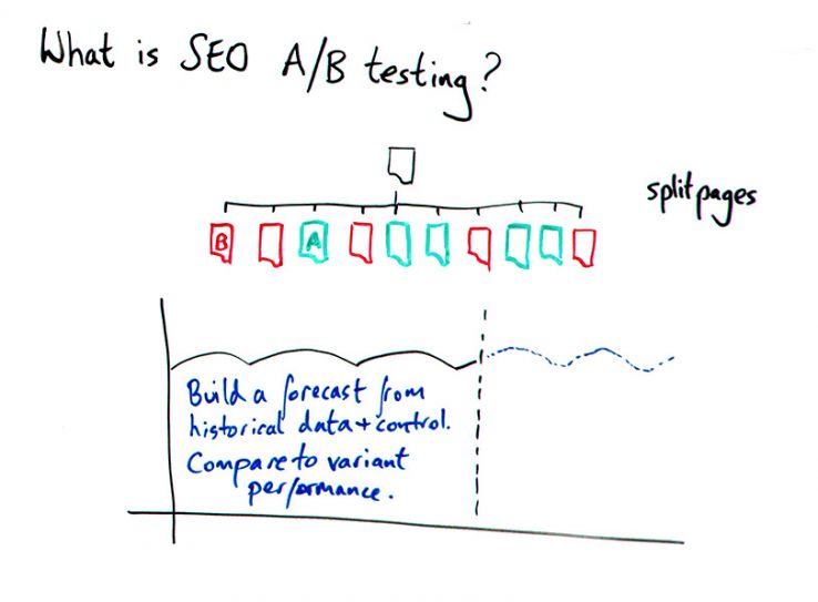 Then you make the change that you're hypothesizing is going to make a difference just to one of those groups of pages, and you leave the other set unchanged. Then, using your analytics data, you build a forecast of what would have happened to the variant pages if you hadn't made any changes to them, and you compare what actually happens to the forecast. Out of that you get some statistical confidence intervals, and you get to say, yes, this is an uplift, or there was no difference, or no, this hurt the performance of your site.