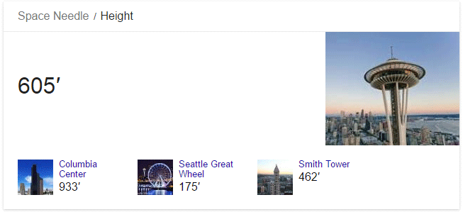 You may be skeptical, and that's understandable. So, let's take a look at what Google is capable of, right now, in 2016. Let's say you wanted to find the height of Seattle's iconic Space Needle. As a seasoned searcher, you might try something short and sweet, like this...