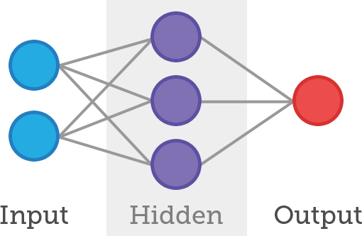 So, how do we put this model to work? Let's start with what's known as "supervised learning." In a neural network like this, we have a known set of inputs and a desired set of outputs. Given a certain X, we want to teach the system to return Y. We use these inputs and outputs to train the system, gradually weighting the connections. The hidden layer adds computational complexity, giving the machine enough connections to encode interesting data.