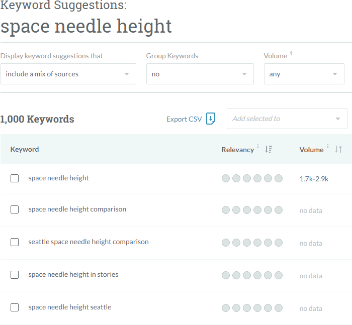 For the final group ("Seattle average rent by neighborhood"), I browsed the grouped keywords, and one caught my eye: "average rent downtown seattle." I like this one because it's specific to an actual neighborhood, although we might choose to craft content around some kind of neighborhood-by-neighborhood theme as well. What I like about trying to understand our keywords as groups/clusters is that it's also a great process for generating content ideas.