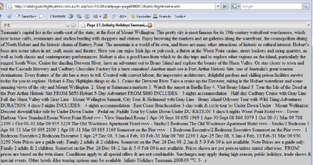Clearly, you can see a page from Flightcentre.com outranking DiscoverTasmania.com's page about Hobart, yet something looked fishy. The lack of a cached version indicates that they're trying to hide something, so we decided to investigate further. Clicking on the Flightcentre.com link, you're brought to this page: