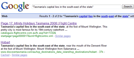 We started by reviewing this page about Hobart, and grabbed a short snippet of text to analyze whether the page had any duplicate content issues. Here's the page below: