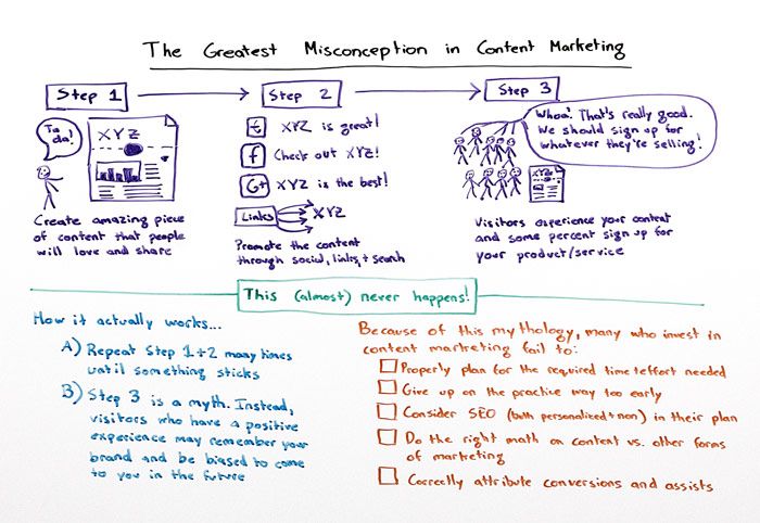 Howdy Moz fans, and welcome to another edition of Whiteboard Friday. Today we're going to talk a little bit about content marketing and specifically this giant myth, this misconception that exists in the content marketing field about how the practice really works.