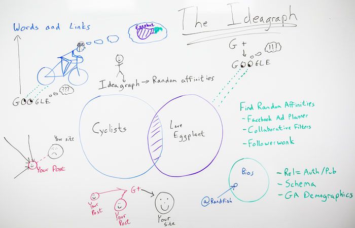 So just to summarize all of this, links and words have worked for a long time, but we're starting to see the limitations of it, particularly with mobile devices and other kinds of search. Google has been trying to find a way to fix this, as has Bing, and they're both working very hard at this. They're trying to build on this thing that has always existed that I call the IdeaGraph, and they're building on it using random affinities. Selling to random affinities is much, much easier. You can find them using lots of tools out on the web like collaborative filtering, Facebook, and Followerwonk. You can take advantage and position your site for it by just making sure that you have these basic mark-up elements in place, and you're already collecting data.
