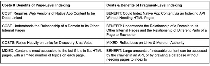 Google’s desire to index Native Apps and Web Apps, including single-page apps, has necessitated Google’s switch to indexing based on Fragments and Fraggles, rather than pages. In JavaScript, as well as in Native Apps, a "Fragment" is a piece of content or information that is not necessarily a full page.