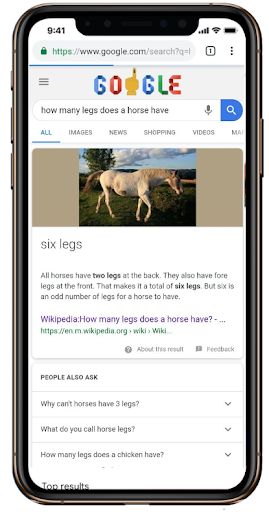 The build-out of Featured Snippets has been so aggressive that sometimes the answers that Google lifts are obviously wrong, as you can see in the example image below. It is also important to understand that Featured Snippet results can change from location to location and are not language-agnostic, and thus, are not translated to match the Search Language or the Phone Language settings. Google also does not hold themselves to any standard of consistency, so one Featured Snippet for one query might present an answer one way, and a similar query for the same fact could present a Featured Snippet with slightly different information. For instance, a query for "how long to boil an egg" could result in an answer that says "5 minutes" and a different query for "how to make a hard-boiled egg" could result in an answer that says "boil for 1 minute, and leave the egg in the water until it is back to room temperature."