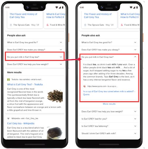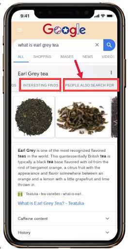 Finally, the increased occurrence of "Related Searches" as well as the inclusion of People Also Ask (PAA) questions, just below most Knowledge Graph and Featured Snippet results, is undeniable. The Earl Tea screenshot shows that PAA’s along with Interesting Finds are both part of the Knowledge Graph too.