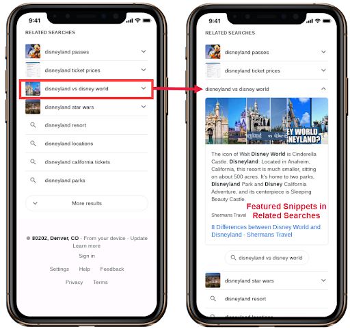The graph below shows the steady increase in PAA’s. PAA results appear to be an expansion of Featured Snippets because once expanded, the answer to the question is displayed, with the citation below it. Similarly, some Related Search results also now include a result that looks like a Featured Snippet, instead of simply linking over to a different search result. You can now find ‘Related Searches’ throughout the SERP, often as part of a Knowledge Graph results, but sometimes also in a carousel in the middle of the SERP, and always at the bottom of the SERP — sometimes with images and expansion buttons to surface Featured Snippets within the Related Search results directly in the existing SERP.