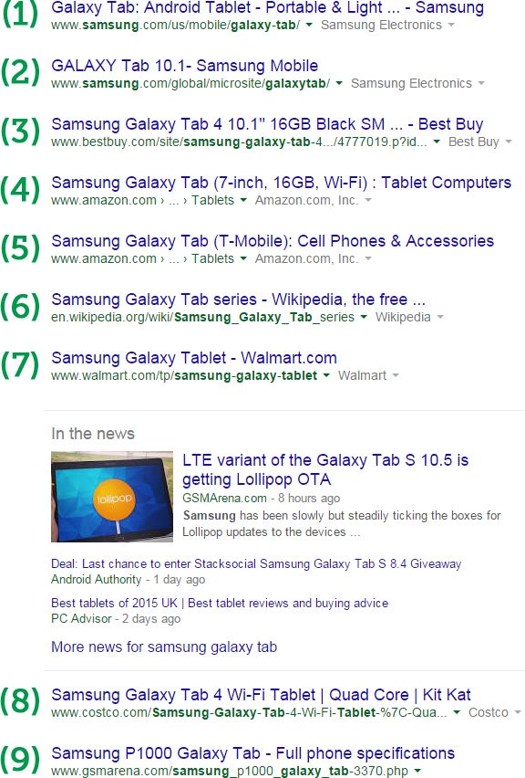 You wanna get really crazy? Let's look at an entire SERP for "polar" on an Android device (Moto G). This result also includes In-depth Articles (warning: scrolling ahead):