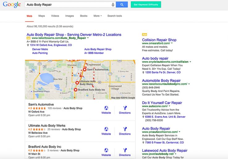 Even if you're not listed in the top three results, some clicks are going to the maps results and the "more results" options. Being listed in the top 6 or 7 positions will still have you listed above the fold on the left side of the map view. Don't ignore it. Take advantage of it. What if your competition doesn't have any reviews? Maybe being #6 on that list can make a huge impact on your business simply by being the only one with active review stars.