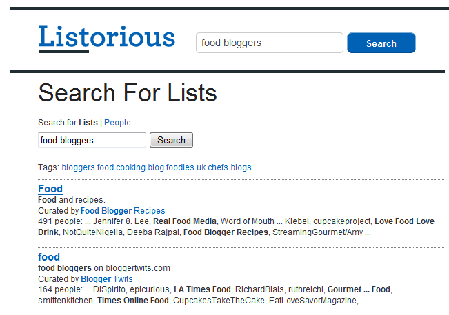 As I said, there are loads of ways to find these lists. I tend to find that just searching for my keywords in Twitter search and finding influential people often leads me to lists of some sort.