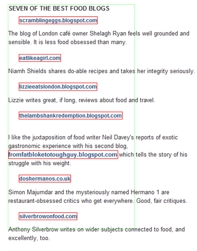 Lets use one of the examples I linked to above, say you wanted to pull the URLs of the websites in this list on The Telegraph -