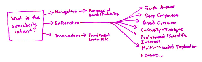 Now generally speaking, if it's navigation or transaction, content marketing-types of pieces are not the right match for those types of queries. But if it's informational, which is a huge swath, a massive amount of the searches that take place on the web and certainly many of the ones that content marketing is designed to target, because then it can turn those people from, "Yeah, I now know about your brand and I'm now considering you and I thinking about you."