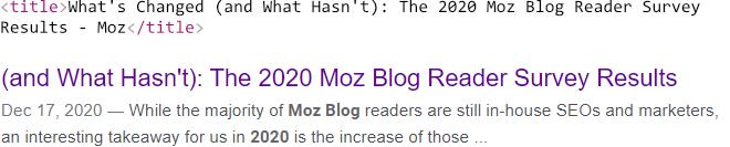 Although the main portion of the rewrite is okay, unfortunately the cutoff makes it look like the author is telling readers to ditch Moz. (Marketing wasn’t thrilled about that). I opted to simplify the <title> tag, removing the quote and the parentheses. Here’s the end result: