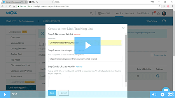 (3) Create a tracking list in Link Explorer