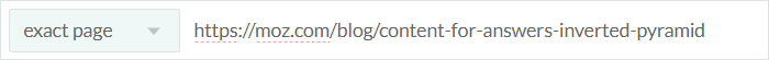 Some days, you don't want to wade through your entire domain, but just want to target a single piece of content. Just enter or paste that URL, and select "exact page" (once you start typing a full path, we'll even auto-select that option for you):