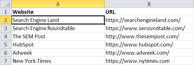 Obviously, this list is on the short side, but let's say I decide to pull a few of the usual suspects from the search marketing world, plus one from the broader marketing world, and a couple of aspirational sites (I'm probably not going to get that New York Times link, but let's dream big).