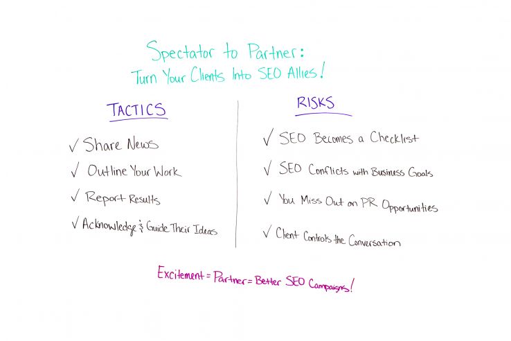 But, "Hey, I'm your partner in this. I'm your ally, and I'm going to give you all the information because I know that it's going to be mutually beneficial for us." So at the end here, excitement, partner, better SEO campaigns. This is going to be I believe a recipe for success to get your clients and your boss on board. Thanks again so much for watching this edition of Whiteboard Friday, and come back next week for another one.