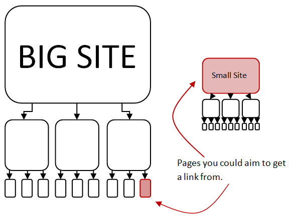 So, this suggests that a link from the front page of a small site may be better than a link from an inner page on a large site.