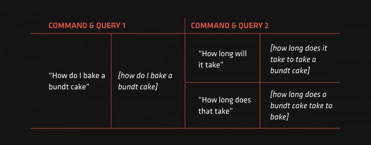 Of course, we’re not above pointing out the fumbles. In the string of: “How to bake a Bundt cake,” “What kind of pan does it take,” and then “How much do those cost,” the actual query Google Assistant searched for the last question was [how much does bundt cake cost].