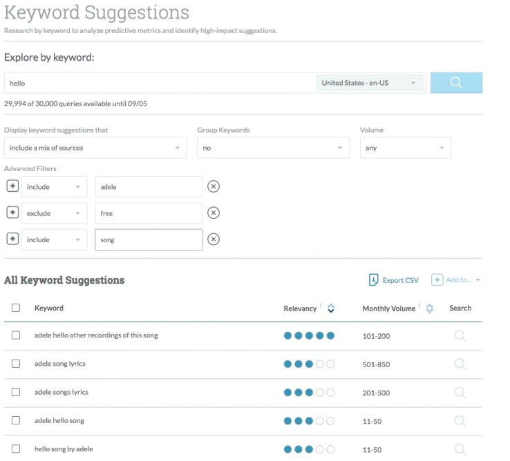 Advanced filtering in Keyword Suggestions