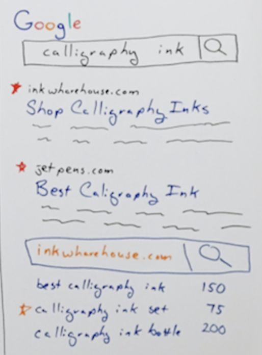 But if you're not using Keyword Explorer, one thing I like to do is I'll take my seed keyword, "calligraphy ink," and I'll put it into Google and I'll see who's ranking in the top 1, 2, 3, 4, or 5 positions. I'll look specifically for sites that specialize in this. I might throw out Amazon or things like that.
