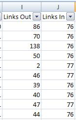 The second application of the very same data is the useful links in/links out column which looks like this: