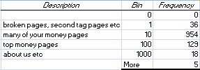 Taking this data to the next level - here's a glimpse at what's possible, an analysis of type of page vs number of internal links shows you that for this site (not the distilled site) the money pages are getting very few internal links compared to top level pages and something is broken in the information architecture: