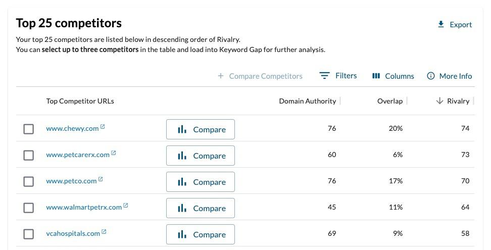 Do you already know who your competitors are? That doesn’t mean you should skip this step! This tool can also validate your own competitor choices. If you have competitors in mind, run your site through this tool and see what comes up. It's crucial to have metrics that substantiate your assumptions.